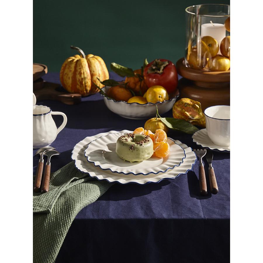Тарелки из коллекции Santorini от бренда Liberty Jones воплощают в себе элегантность посуды из фарфора, привлекая необычным дизайном с контрастными акцентами. Особенности и преимущества: - Фарфор является прочным, устойчивым к износу материалом, который сохраняет презентабельный вид долгие годы. - Акцент в виде контрастной каймы и легкий рельеф делают дизайн интересным и запоминающимся. - Идеально гладкая поверхность и высокая сопротивляемость материала к химическим воздействиям обеспечивают простой уход. - Белая посуда отлично гармонирует с предметами сервировки любой цветовой гаммы. Коллекция Santorini великолепно передает атмосферу уединенного греческого острова, известного своими завораживающими видами и удивительной архитектурой. Оттенки белого и синего напоминают о бескрайнем море и уютных домиках на скалах, а необычная “мятая” фактура фарфора ассоциируется с каменистыми склонами и живописными утесами. Материал: фарфор. Размеры: 21х21х2,1 см. Количество в наборе: 2 шт. Можно мыть в посудомоечной машине, замораживать, использовать в микроволновой печи и духовке при температуре не более 180° C.
