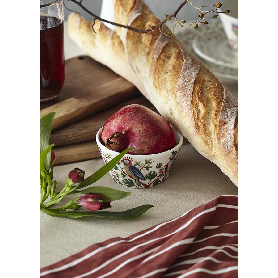Чаша Parrot из коллекции Birds of Paradise – красивая и качественная посуда из фарфора, которая украсит интерьер кухни и сделает любую сервировку особенной. Особенности и преимущества: - Нанесение слоя глазури поверх узора позволяет изделию сохранять безупречный вид долгие годы, даже после воздействия высоких температур и частого мытья в посудомоечной машине. - Чаша из высококачественного глазурованного фарфора имеет идеально гладкую поверхность, с которой легко удаляются любые загрязнения. - Материал обладает прочностью, является экологичным, безопасным для здоровья, не подвержен старению. - Яркий принт природной тематики приковывает взгляды и позволяет посуде стать настоящим украшением любого стола. Коллекция Birds of Paradise разработана английской художницей Karen Wall, основным направлением творчества которой является создание иллюстраций для посуды, домашнего текстиля и детских книг. В основе дизайна – природные мотивы, вдохновленные традиционным фольклором Великобритании 19-го века. Атмосфера волшебного леса с райскими птицами погружает в мир добрых грез и фантазий, где всегда тепло, уютно и есть место чудесам. Наши продукты прошли испытания на отсутствие в составе свинца и кадмия в соответствии со стандартными тестами FDA. Материал: фарфор. Размеры: 10х10х5 см. Объем: 180 мл. Можно мыть в посудомоечной машине, использовать в микроволновой печи и духовке при температуре не более 250° C.