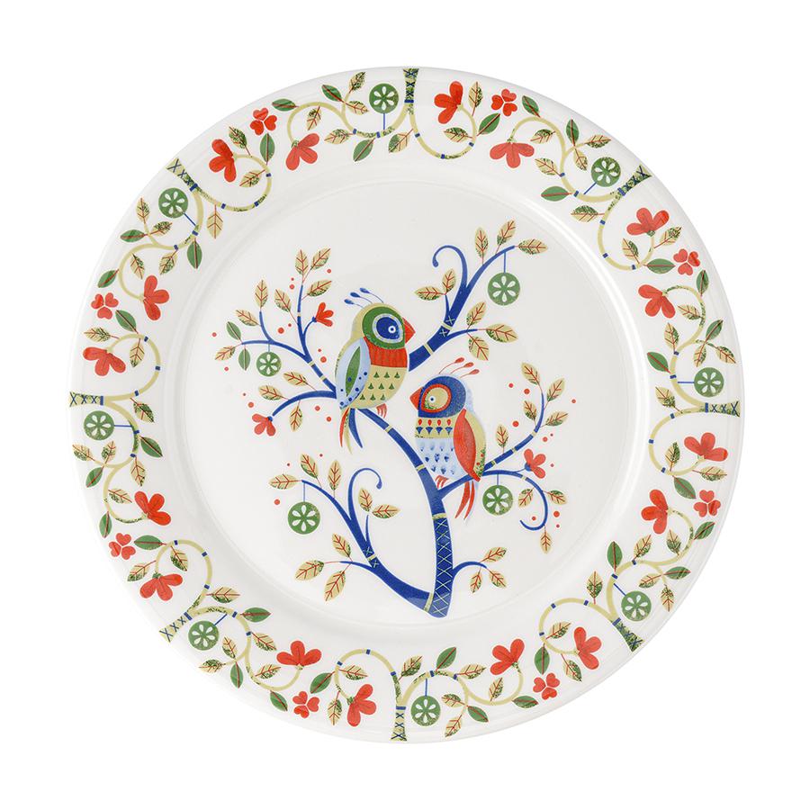 Набор тарелок Love Birds из коллекции Birds of Paradise – красивая и качественная посуда из фарфора, которая украсит интерьер кухни и сделает любую сервировку особенной. Особенности и преимущества: - Нанесение слоя глазури поверх узора позволяет изделиям сохранять безупречный вид долгие годы, даже после воздействия высоких температур и частого мытья в посудомоечной машине. - Тарелки из высококачественного глазурованного фарфора имеют идеально гладкую поверхность, с которой легко удаляются любые загрязнения. - Материал обладает прочностью, является экологичным, безопасным для здоровья, не подвержен старению. - Яркий принт природной тематики приковывает взгляды и позволяет посуде стать настоящим украшением любого стола. - Набор поставляется в фирменной подарочной упаковке. Коллекция Birds of Paradise разработана английской художницей Karen Wall, основным направлением творчества которой является создание иллюстраций для посуды, домашнего текстиля и детских книг. В основе дизайна – природные мотивы, вдохновленные традиционным фольклором Великобритании 19-го века. Атмосфера волшебного леса с райскими птицами погружает в мир добрых грез и фантазий, где всегда тепло, уютно и есть место чудесам. Наши продукты прошли испытания на отсутствие в составе свинца и кадмия в соответствии со стандартными тестами FDA. Материал: фарфор. Размеры: 21х21х1,85 см. Количество в наборе: 2 шт. Можно мыть в посудомоечной машине, использовать в микроволновой печи и духовке при температуре не более 250° C.