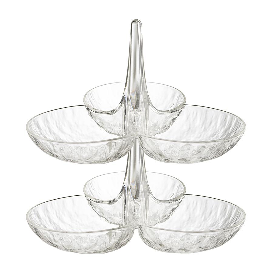Набор менажниц Arctic – идеальный выбор для сервировки на свежем воздухе и пикника. Менажницы имеют специальную конструкцию с отверстием в центре, благодаря чему вы можете легко объединять их, создавая любое количество ярусов. Посуда идеально подходит для подачи десертов и закусок. Особенности и преимущества: - Акриловая посуда отличается высоким блеском и прозрачностью, устойчива к царапинам, не бьется при падении и легко моется. - Материал является гигиеничным, не впитывает загрязнения и запахи, не содержит вредных примесей, в том числе бисфенол-А. - Можно использовать каждую менажницу отдельно или собирать их в единую конструкцию для экономии места на столе. Материал: акрил. Размеры: 23х23х16,8 см. Верхний диаметр: 12,6 см. Нижний диаметр: 11 см. Цвет: прозрачный. Количество в наборе: 2 шт. Можно мыть в посудомоечной машине.