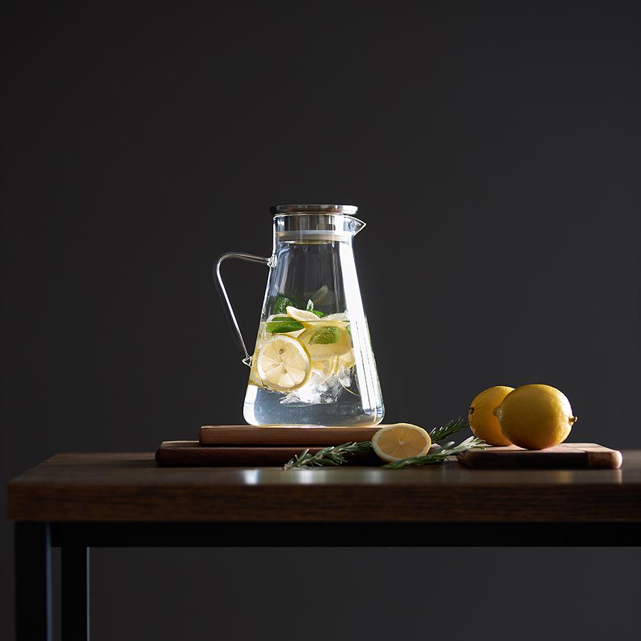 Кувшин Pure выполнен из боросиликатного стекла, что позволяет использовать его не только для холодных, но и для горячих напитков. Вы можете подавать в нем сок, лимонад, морс, компот или чай – особенно эффектно в нем будут смотреться цветные напитки с травами и кусочками фруктов. Особенности и преимущества: - Боросиликатное стекло характеризуется высокой прочностью и устойчивостью к температурным перепадам, что обеспечивает изделиям из него практичность и долговечность. - Крышка из нержавеющей стали имеет силиконовый уплотнитель, благодаря чему хорошо прилегает и не соскальзывает при наливании напитка. Материал: боросиликатное стекло. Высота: 22,7 см. Ширина с ручкой: 18,5 см. Диаметр низа: 14,5 см. Диаметр верха: 8,2 см. Объем: 1,8 л. Можно мыть в посудомоечной машине в деликатном режиме. Запрещается использование абразивных материалов и агрессивной бытовой химии.