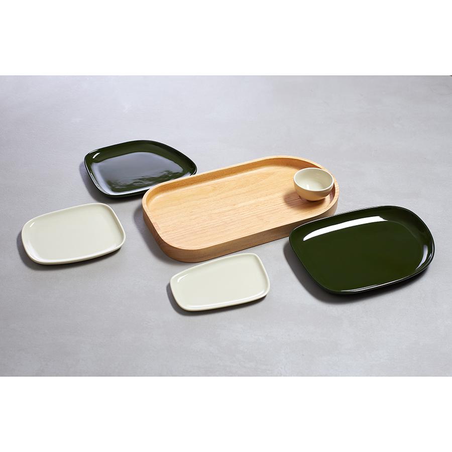 Набор сервировочный Sorrento объединяет элегантность фарфора и красоту натуральной древесины, превращая каждый прием пищи в торжество эстетики и вкуса. С его помощью вы сможете эффектно подать к столу различные закуски, соусы и разнообразить сервировку. Особенности и преимущества: - Посуда из фарфора имеет утонченный вид, подходит для микроволновой печи и посудомоечной машины, что делает ее удобной в использовании. - Набор включает тарелки разных форм и размеров, что позволяет удобно сервировать различные закуски. - Деревянный поднос имеет надежную цельную конструкцию с высокими бортиками, что предотвращает скольжение тарелок и продуктов. Материалы: тарелки – фарфор; поднос – каучуковое дерево. Размеры тарелок: 20х15х1,5 см; 17х15х1,4 см; 14х12,3х1,1 см; 13,7х9х1 см. Размеры чаши: 6,4х5,8х3,8 см. Объем чаши: 44 мл. Размеры подноса: 30,8х17,2х2,5 см. Количество предметов в наборе: 6 шт. Тарелки можно мыть в посудомоечной машине и использовать в микроволновой печи. Поднос рекомендуется мыть вручную с помощью мягкой губки в теплой мыльной воде. После очищения аксессуар необходимо вытереть насухо полотенцем и поставить на хранение в хорошо проветриваемое место. Запрещается долгое замачивание, применение абразивных материалов, агрессивной бытовой химии и мытье в посудомоечной машине. Чтобы изделие из дерева дольше сохраняло привлекательный вид, 1-2 раза в месяц необходимо протирать его минеральным маслом. Состав нужно наносить на сухую поверхность и втирать до полного впитывания.