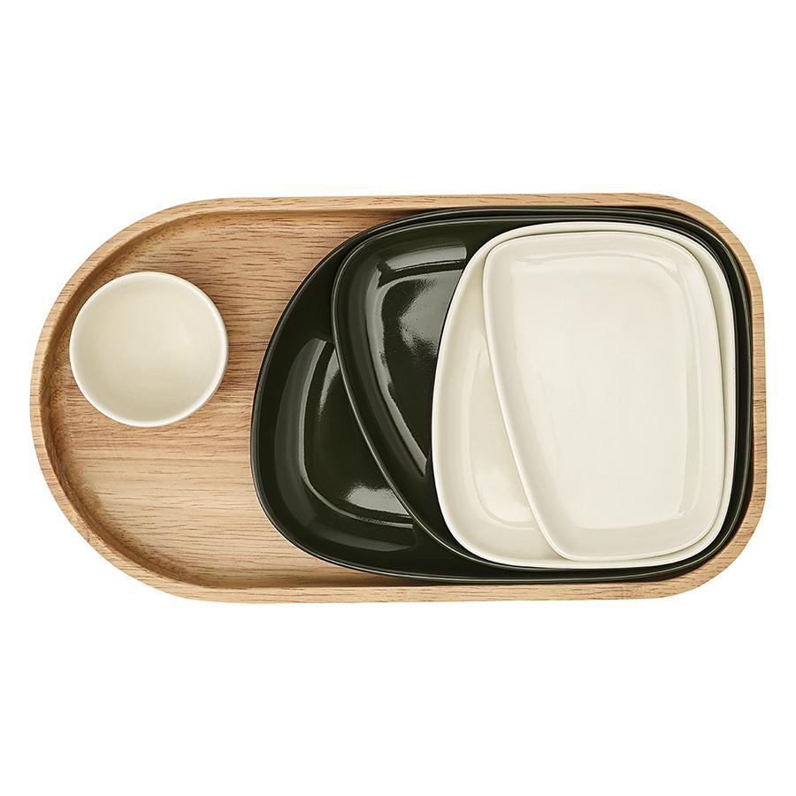 Набор посуды ЯЯЯ Набор из 5-ти сервировочных тарелок на деревянном подносе sorrento арт. LJ0000402