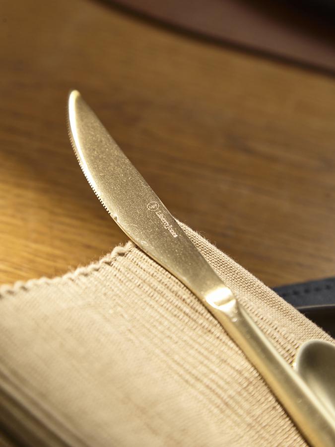 Набор столовых приборов Pure станет идеальным выбором для сервировки стола на любое мероприятие, будь то обычный семейный ужин или праздничный обед. Красивый блеск стали, плавные формы и деликатные изгибы каждого предмета создают гармоничное сочетание стиля и функциональности, позволяя наслаждаться каждым приемом пищи. Набор рассчитан на шестнадцать персон. Стандартный сет на одного человека включает в себя нож, вилку, столовую и чайную ложки. Особенности и преимущества: - Все предметы изготовлены из нержавеющей стали 18/0, которая отличается высокими антикоррозионными свойствами и износоустойчивостью. - Матовая полировка придает приборам современный вид, делает их более практичными – на их поверхности менее видны отпечатки пальцев и мелкие царапины. - Отличительная особенность коллекции – простые, элегантные формы, не перегруженные лишними деталями. - Столовые приборы золотистого цвета с матовой полировкой отлично подойдут для сервировки в традиционном и современном стиле. Их сдержанная элегантность прекрасно гармонирует с простыми формами и нейтральными цветами. Материалы: нержавеющая сталь 430 (18/0). Длина ножа: 23,5 см. Вес ножа: 68 г. Длина вилки: 21 см. Вес вилки: 54,5 г. Длина ложки: 21,5 см. Вес ложки: 65 г. Длина чайной ложки: 15 см. Вес чайной ложки: 24,5 г. Цвет: золотистый. Полировка: матовая. Количество предметов в наборе: 16 шт. Приборы рекомендуется мыть вручную.
