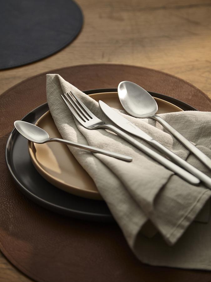 Набор столовых приборов Pure станет идеальным выбором для сервировки стола на любое мероприятие, будь то обычный семейный ужин или праздничный обед. Красивый блеск стали, плавные формы и деликатные изгибы каждого предмета создают гармоничное сочетание стиля и функциональности, позволяя наслаждаться каждым приемом пищи. Набор рассчитан на шестнадцать персон. Стандартный сет на одного человека включает в себя нож, вилку, столовую и чайную ложки. Особенности и преимущества: - Все предметы изготовлены из нержавеющей стали 18/0, которая отличается высокими антикоррозионными свойствами и износоустойчивостью. - Матовая полировка придает приборам современный вид, делает их более практичными – на их поверхности менее видны отпечатки пальцев и мелкие царапины. - Отличительная особенность коллекции – простые, элегантные формы, не перегруженные лишними деталями. - Столовые приборы серебристого цвета с матовой полировкой отлично подойдут для сервировки в традиционном и современном стиле. Их сдержанная элегантность прекрасно гармонирует с простыми формами и нейтральными цветами. Материалы: нержавеющая сталь 430 (18/0). Длина ножа: 23,5 см. Вес ножа: 68 г. Длина вилки: 21 см. Вес вилки: 54,5 г. Длина ложки: 21,5 см. Вес ложки: 65 г. Длина чайной ложки: 15 см. Вес чайной ложки: 24,5 г. Цвет: серебристый. Полировка: матовая. Количество предметов в наборе: 16 шт. Приборы будут дольше сохранять привлекательный вид, если мыть их вручную. Допускается мытье в посудомоечной машине в низкотемпературном режиме с использованием деликатных моющих средств. Запрещается применение абразивов и агрессивной бытовой химии.