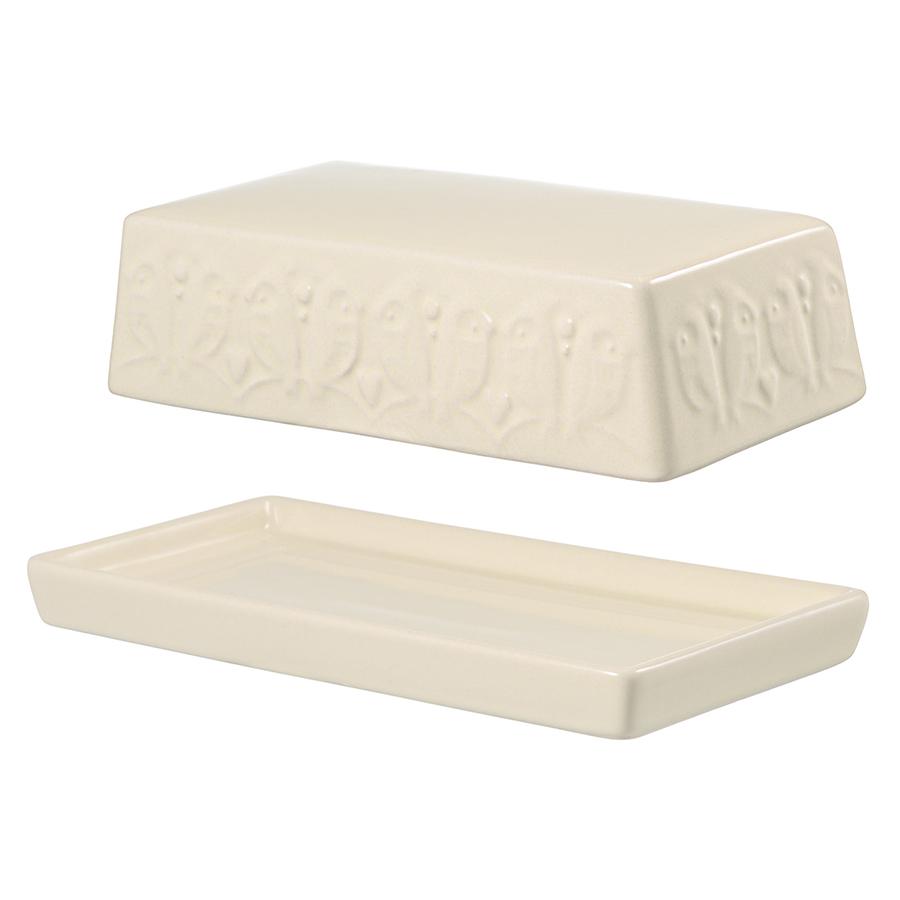 Масленка из коллекции Birds of Paradise – качественная посуда из экологичной каменной керамики, которая дольше сохраняет продукты свежими и великолепно дополняет любую сервировку. Отличительной особенностью серии является объемный узор природной тематики, придающий дизайну элегантные нотки. Благодаря высокой прочности и устойчивости материала к износу изделие не теряет привлекательный внешний вид на протяжении всего срока службы. Покрытие глазурью облегчает уход, обеспечивает декоративность и дополнительную защиту от внешних воздействий. Масленка состоит из поддона для масла с небольшими бортиками и объемной крышки прямоугольной формы. Наши продукты прошли испытания на отсутствие в составе свинца и кадмия в соответствии со стандартными тестами FDA. Коллекция Birds of Paradise разработана английской художницей Karen Wall, основным направлением творчества которой является создание иллюстраций для посуды, домашнего текстиля и детских книг. В основе дизайна – природные мотивы, вдохновленные традиционным фольклором Великобритании 19-го века. Атмосфера волшебного леса с райскими птицами погружает в мир добрых грез и фантазий, где всегда тепло, уютно и есть место чудесам. Материал: каменная керамика. Размеры: 18х10х5,7 см. Цвет: кремовый. Допускается мытье в посудомоечной машине, использование в микроволновой печи и духовке при температуре не более 230° C. Посуду можно подвергать заморозке при температуре не ниже -20° C.