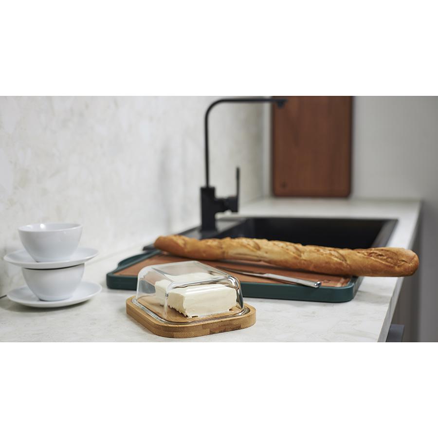 Масленка от бренда Smart Solution с дизайном в эко-стиле органично впишется в различные варианты сервировки и украсит интерьер кухни. Особенности и преимущества: - Крышка из прочного и устойчивого к износу боросиликатного стекла. - Основание из влагостойкой и долговечной бамбуковой древесины. - Привлекательный дизайн в эко-стиле. - Компактные размеры – не занимает много места на столе и в холодильнике. Материал: боросиликатное стекло, бамбук. Размеры масленки: 18х14х6 см. Размеры стеклянной крышки: 13,5х9х4 см. Объем: 640 мл. От загрязнений очищать в теплой воде с помощью мягкой губки с жидким моющим средством.