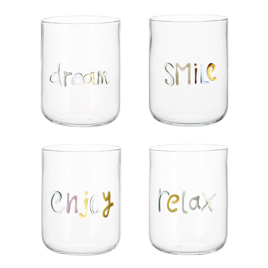 Набор стаканов Cheers станет настоящей находкой для тех, кто любит необычные предметы сервировки. Такая посуда идеально подходит для подачи холодных напитков. Набор привлекает внимание интересным дизайном – стенки стаканов украшает рельефная, цветная надпись. Особенности и преимущества: - Стаканы выполнены из боросиликатного стекла, что обеспечивает им практичность и долговечное использование. - Материал отличается повышенной прочностью, не содержит в своем составе вредных соединений и легко моется. - Декор в виде разноцветной надписи делает дизайн уникальным и узнаваемым. Материал: боросиликатное стекло. Размеры: диаметр – 8,4 см; высота – 10,5 см. Объем: 450 мл. Цвет: разноцветный. Количество стаканов в наборе: 4 шт. Можно мыть вручную в теплой мыльной воде с помощью мягкой губки. Запрещается использование абразивных материалов и агрессивной бытовой химии. Не рекомендуется мыть в посудомоечной машине.