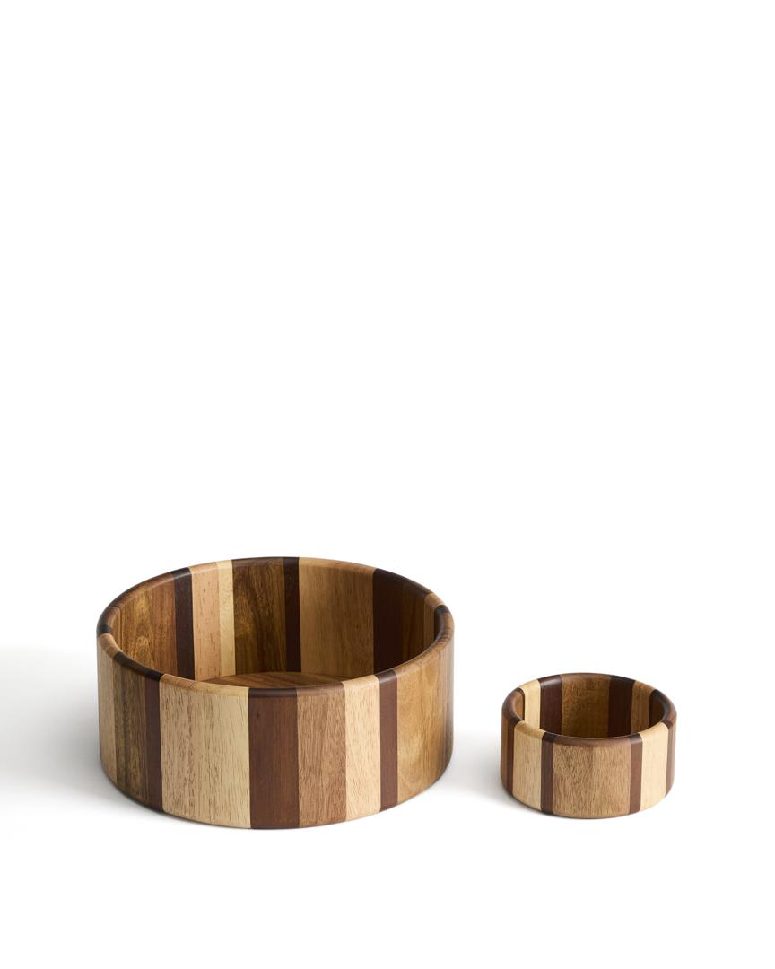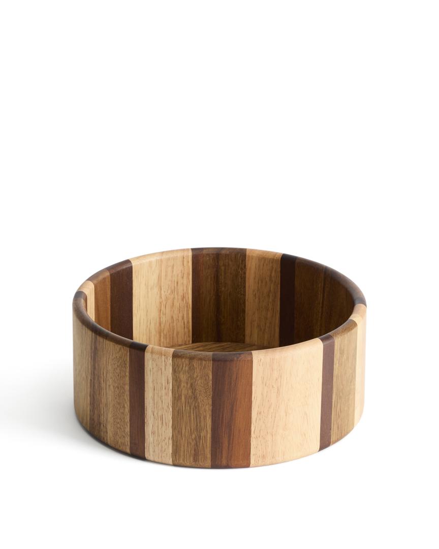 Коллекция Nover изготовлена из комбинированных пород дерева. Каждый предмет эксклюзивен, обладает уникальным рисунком и оттенками, которые придают ему неповторимый характер. Древесина сертифицирована FSC™ на 100%, что гарантирует контролируемую цепочку поставок и ответственное лесопользование. Функциональные и декоративные изделия идеально подойдут для вашей кухни и столовой.
