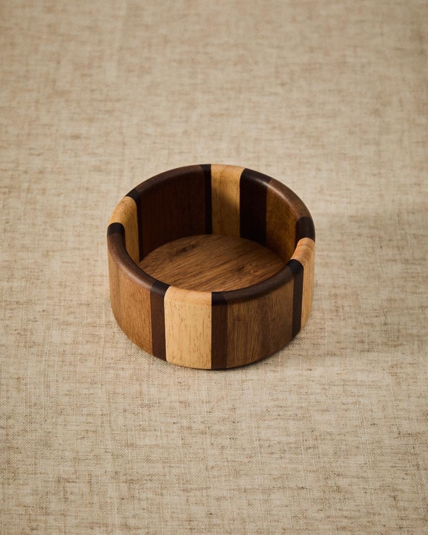 Коллекция Nover изготовлена из комбинированных пород дерева. Каждый предмет эксклюзивен, обладает уникальным рисунком и оттенками, которые придают ему неповторимый характер. Древесина сертифицирована FSC™ на 100%, что гарантирует контролируемую цепочку поставок и ответственное лесопользование. Функциональные и декоративные изделия идеально подойдут для вашей кухни и столовой.